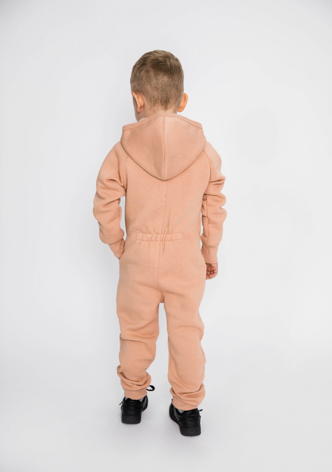 318-К. Комбинезон на молнии с капюшоном, капучино, хлопок 65%, 35% ПЭ, 3 нитка толстовка (начёс) 86,92,98,104