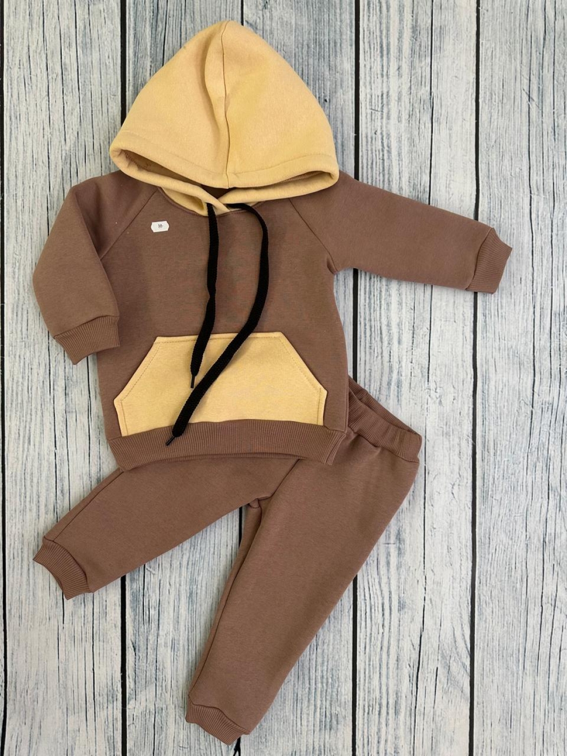 Купить оптом 296-РАЗ. Худи +Брюки детские, хлопок 65%, 35% ПЭ, 3-х нитка (начес) разноцветный 80,86,92 в Новороссийске